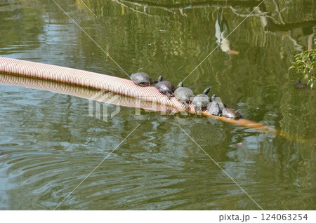 日光浴をする亀(河底池・天王寺公園/大阪府大阪市天王寺区茶臼山町)