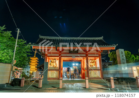三重県津市 火渡り行事のある津観音の十日観音の夜の仁王門
