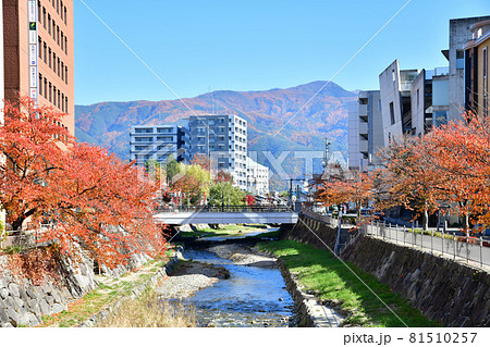 長野県松本市内の風景 千歳橋から女鳥羽川の眺め