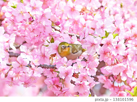 河津桜とメジロ