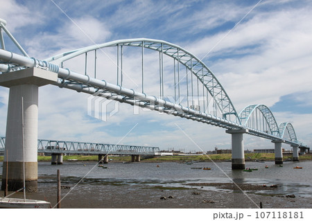江戸川放水路に架けられた水管橋