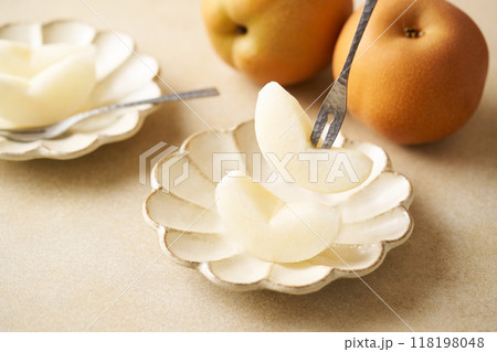 皿に盛り付けた梨(幸水)