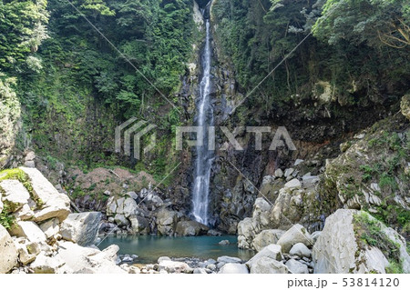 鹿児島県霧島市の千里ヶ滝 青い水が流れる霧島川の滝