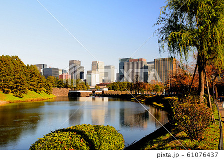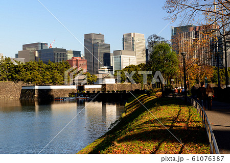 東京 晩秋の皇居周辺 桜田濠と都市風景