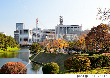 東京 晩秋の皇居周辺 桜田濠と都市風景 放送局など