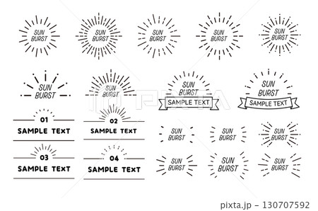 シンプルなサンバーストの手書き風イラストセット(20種類)