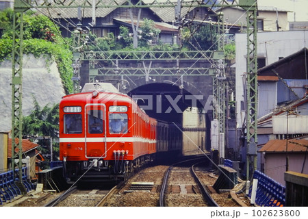 京急らしい光景のひとつ・戸部ー日ノ出町間を走る旧1000形特急(1178他)、1982年6月5日