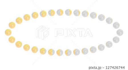 円形に並べられた月の満ち欠け、周期、月齢カレンダーのベクターイラスト