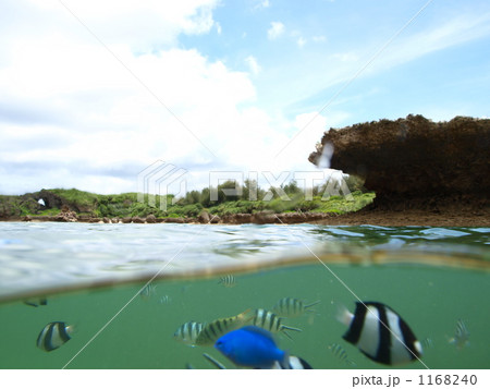 沖縄フォト 宮古島八重干瀬の珊瑚礁半水面イメージ