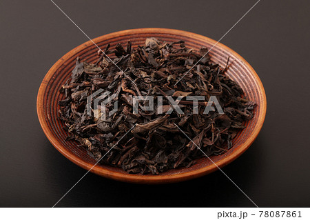器に入った烏龍茶の茶葉のクローズアップ