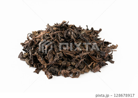 白背景に烏龍茶の茶葉のクローズアップ