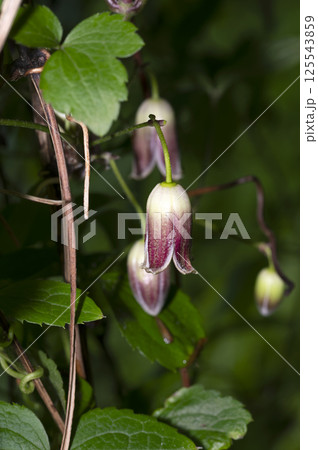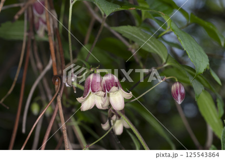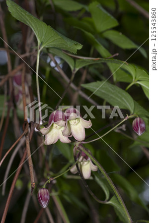 ボタンヅル:白い花を咲かせて垂れ下がる蔓/長野県・八千穂高原・8月