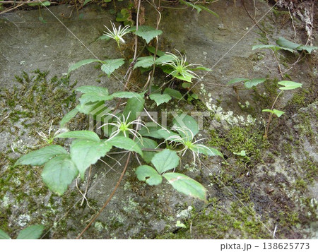 {神奈川県}道路わきの石垣に咲くハンショウヅルの花