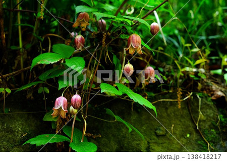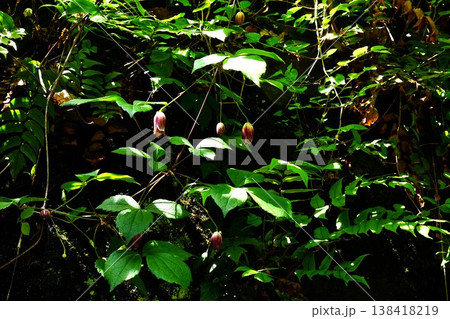 {神奈川県}日陰に咲くハンショウヅルの花