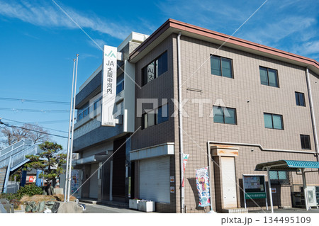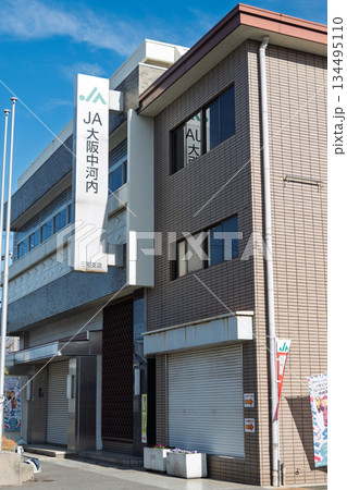 大阪府松原市の地域金融・農業拠点「JA大阪中河内 三宅支店」の建物外観と看板(横構図)
