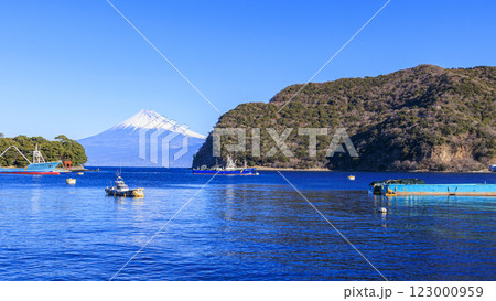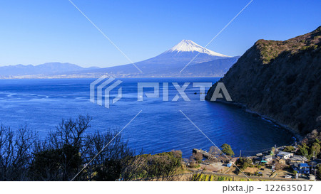 (静岡県)早咲き桜咲く西伊豆黄金崎・富士山遠望