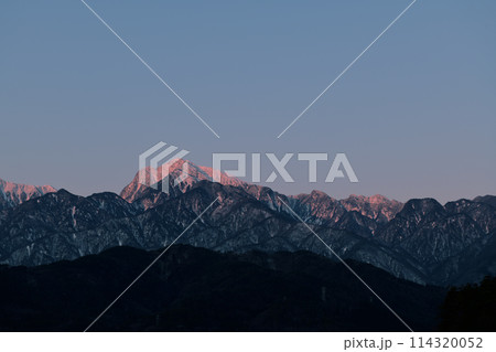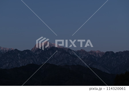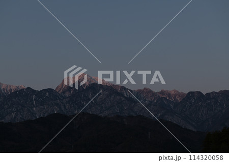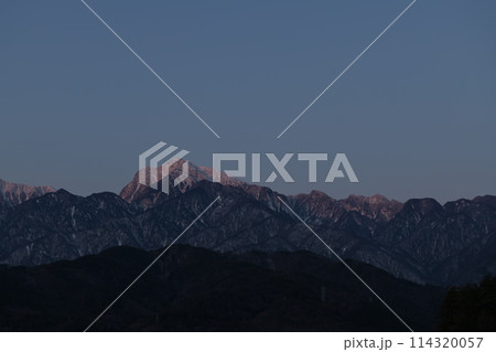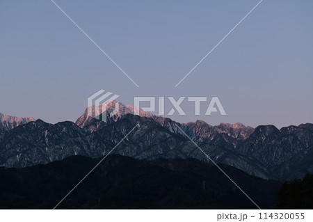 朝の光にモルゲンロート始まる南アルプス甲斐駒ケ岳の峰々