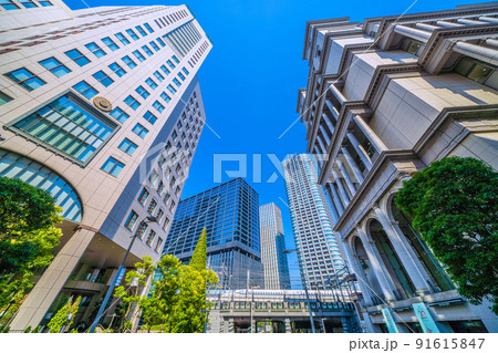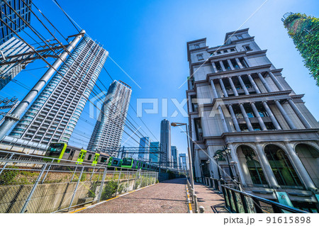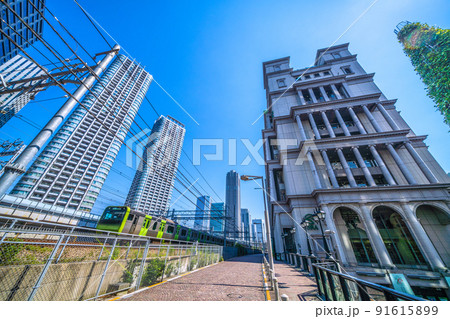 日本の東京都市景観 猛暑日が7日連続…モメント汐留とウインズ汐留の間から新幹線などを望む=7月1日
