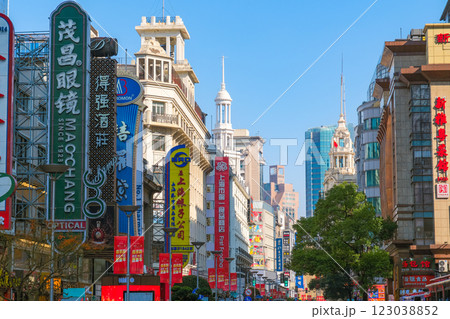 中国 上海市、朝の南京東路(南京歩行街)