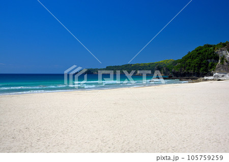 伊豆半島・南伊豆・多々戸浜の白く美しい砂浜に寄せる波とサーフボードのイメージ・静岡県下田市(1)