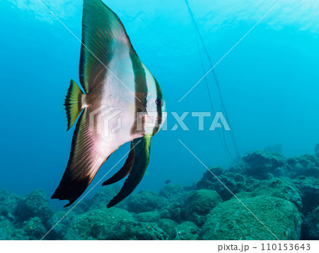 ヒリゾ浜の美しいミカヅキツバメウオ(マンジュウダイ科)の幼魚。 静岡県伊豆半島賀茂郡南伊豆町中木か