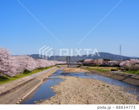 田布施川の桜と青空(山口県熊毛郡田布施町)