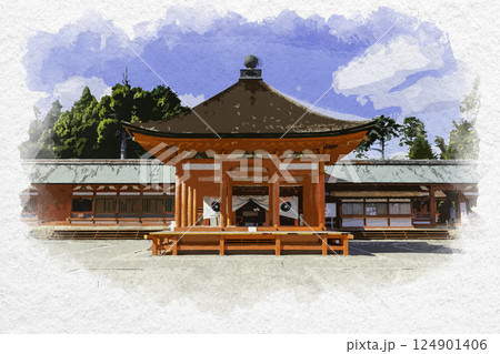 水彩画風 南宮大社 拝殿 岐阜県垂井町