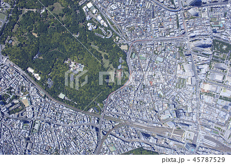 神宮球場や国立競技場上空から新宿御苑方向を空撮