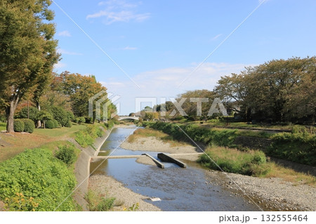 初秋の南浅川 陵南公園周辺 南浅川橋方面風景