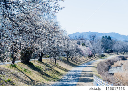 高尾山へ向かう梅が咲くサイクリングロード
