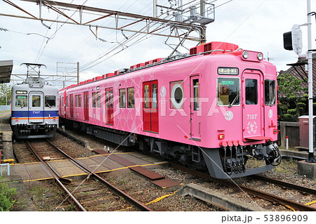 南海電鉄 ピンク色の「めでたい電車 さち」の列車風景