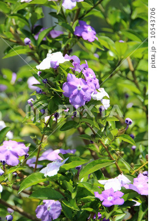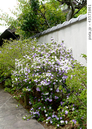 紫と白色の満開のニオイバンマツリの花