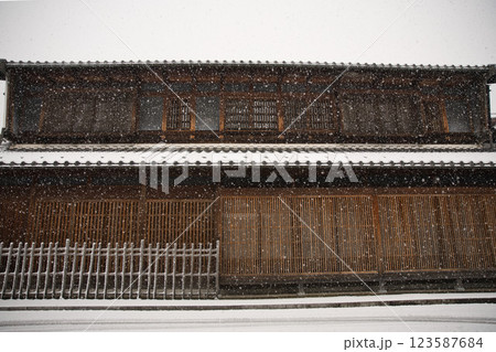 岐阜市 川原町 格子戸の直線と雪景色2