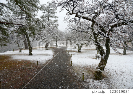 雪の二条城 二の丸庭園の積雪 京都市中京区