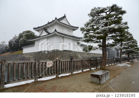 雪の二条城 内堀と本丸櫓門 京都市中京区