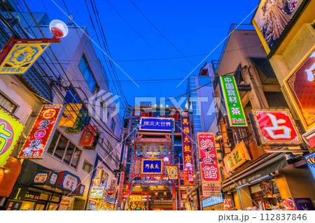 日本の横浜都市景観 4月・横浜中華街・関帝廟通りなどを望む。…希望の時代へ=14日