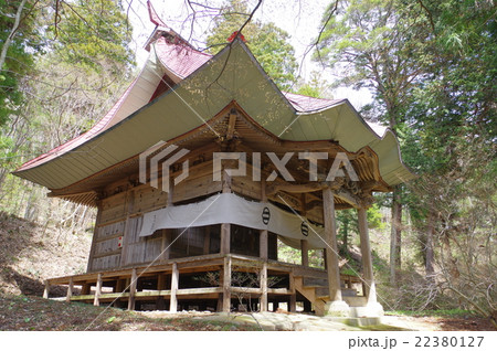 信州 安曇野の古刹 泉福寺の薬師堂 木曽義仲の創建 立川流の彫刻 全景 縦