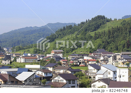 浦佐駅西口から望む、初夏の南魚沼市大和地域エリア俯瞰