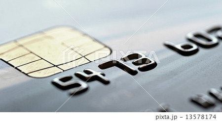Chip of the gray credit card, closeup shot.