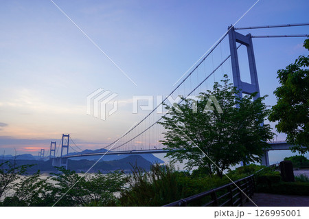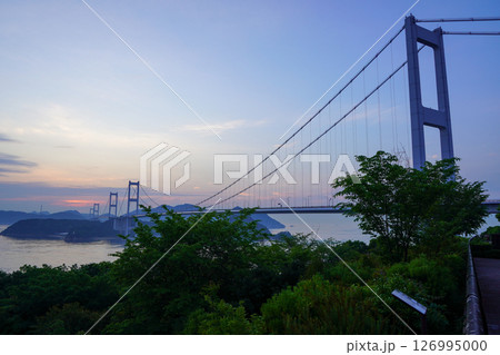 糸山公園から見る明け方の来島海峡大橋