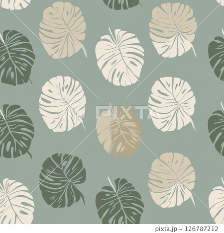ミニマルなモンステラの葉のシームレスパターン - アースカラー