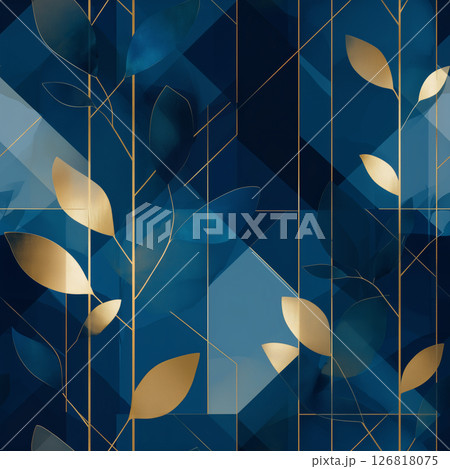 青と金の抽象的な幾何学的葉のシームレスパターン