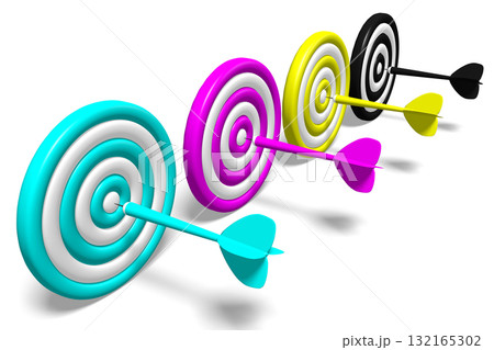 CMYK - cyan, magenta, yellow and black dartboards with arrows