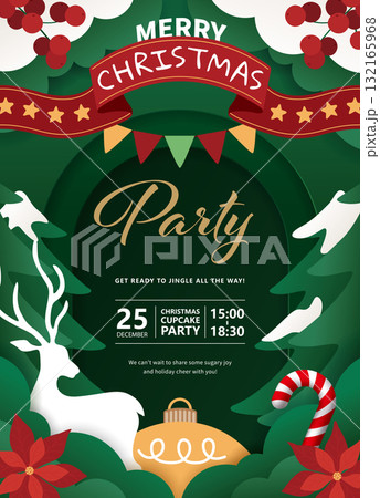 手繪風格簡單可愛立體背景聖誕節派對邀請卡設計,直式廣告海報宣傳單素材圖片
