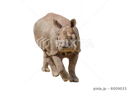 歩くインドサイ(白背景)