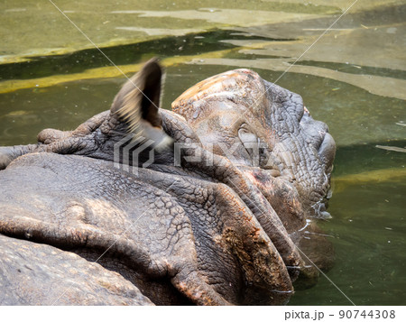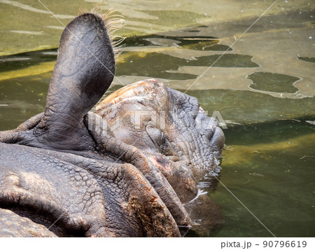 greater one horned rhinoceros in riverside in