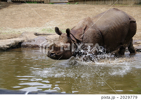 水浴びを楽しむインドサイ(名古屋・東山動植物園)