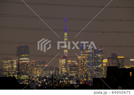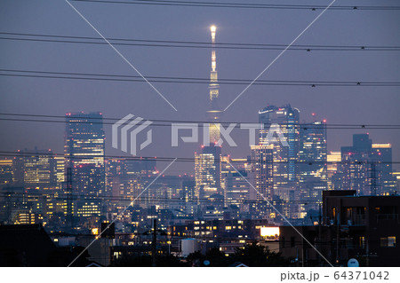 日本の東京都市景観 新型肺炎“都市封鎖”。“柵”(高圧電線)の奥に東京都心=21日、宣言から2週間