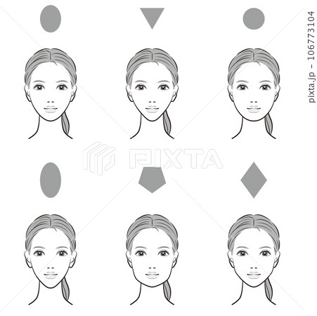 女性の顔型バリエーションセット|丸顔・卵型・面長などのフェイスライン比較素材