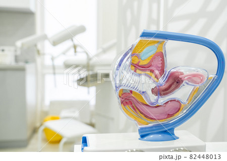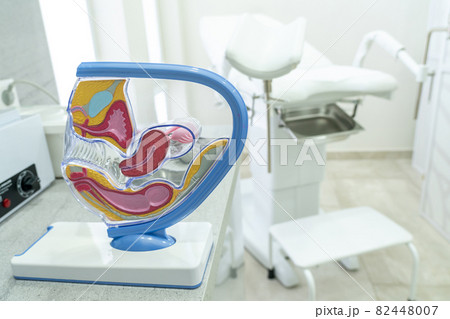 Anatomy of uterus, fallopian tubes and ovaries on anatomical model of female genital organ